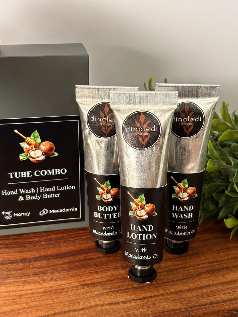 A compact and luxurious travel-sized trio, ideal for on-the-go care or effortless gifting. The Modjadji Travel Set features three everyday essentials housed in sleek, reusable aluminum tubes and presented as a beautifully coordinated set.