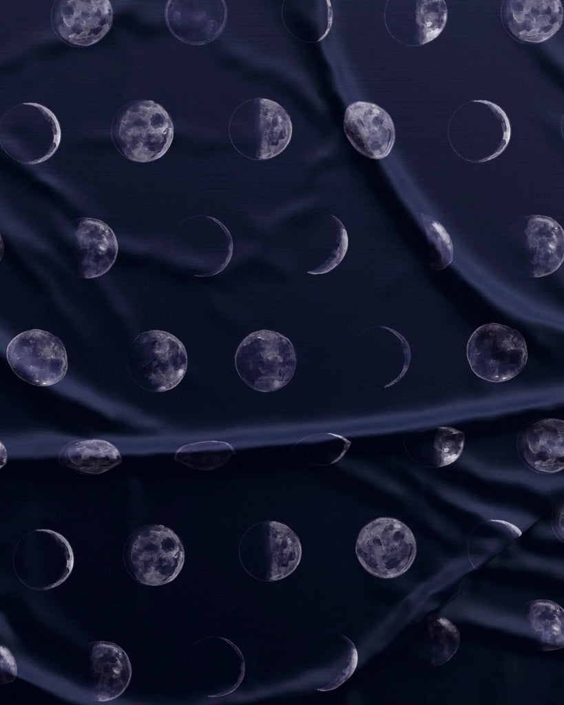 Featuring a dreamy celestial print of lunar phases against a deep navy backdrop, this set captures calm, nighttime serenity with a modern twist — perfect for slow evenings and restful mornings.