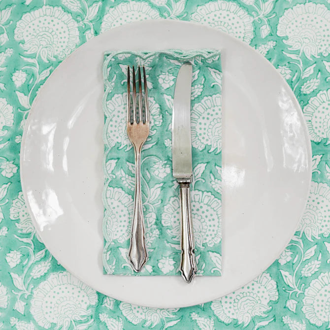 India Ink Napkin Set - Scalloped Wallflower Aqua